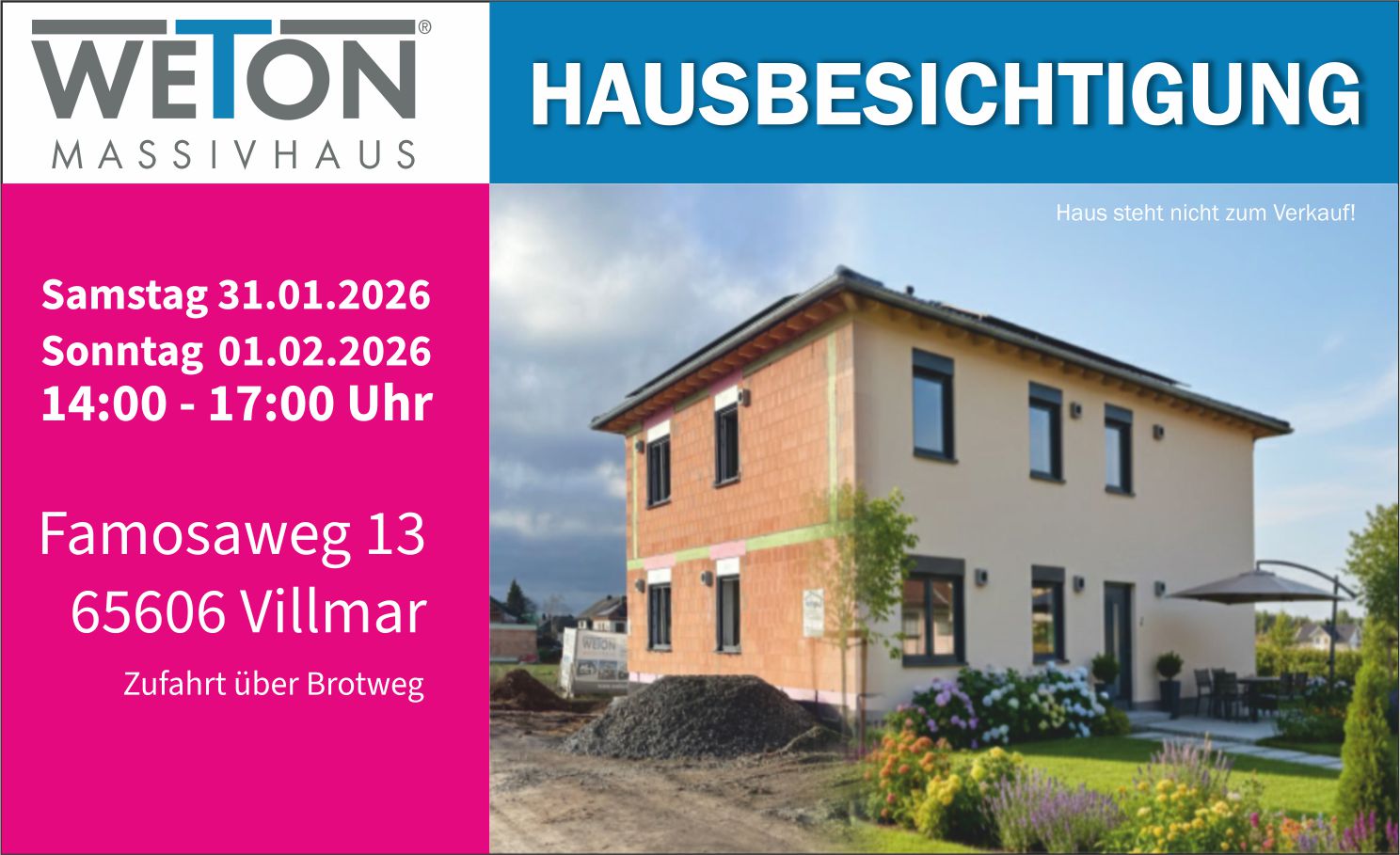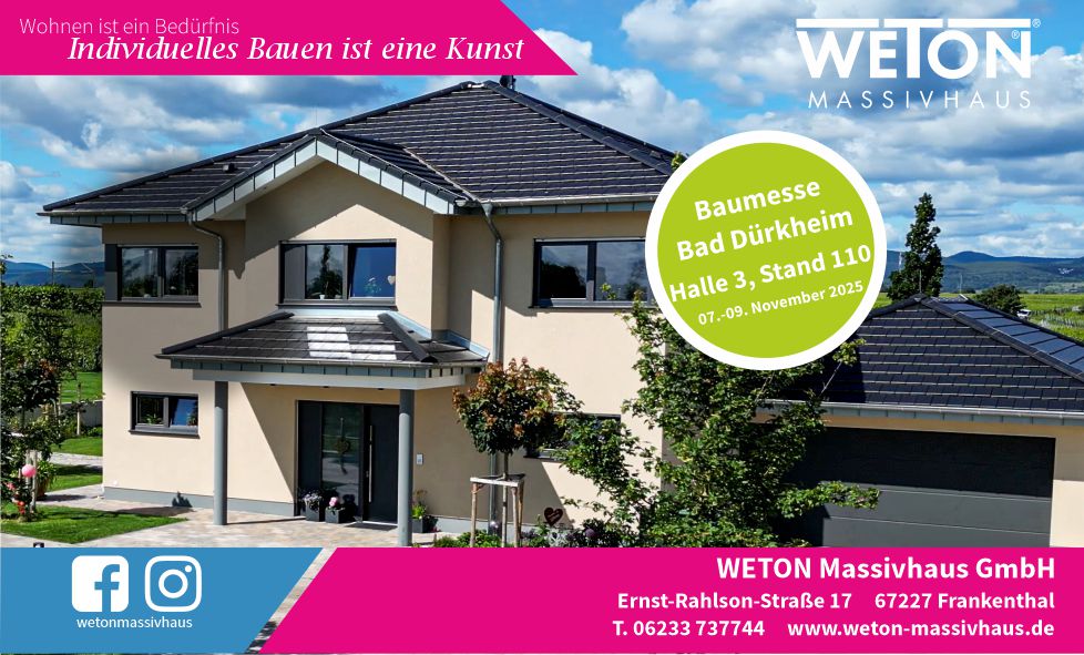 Das regional tätige Unternehmen mit Sitz in Limburg an der Lahn und einer Niederlassung in Frankenthal/Pfalz erstellt als Generalunternehmer qualitativ hochwertige Massivhäuser. Jedes Haus wird ganz individuell nach den Wünschen des Kunden geplant. Selbstverständlich werden hierbei die Grundstücksgegebenheiten und behördlichen Bauvorschriften berücksichtigt. Wer sich für ein WETON Massivhaus entscheidet vereint die Vorteile der freien Architektenplanung mit der Sicherheit durch Festpreisgarantie.