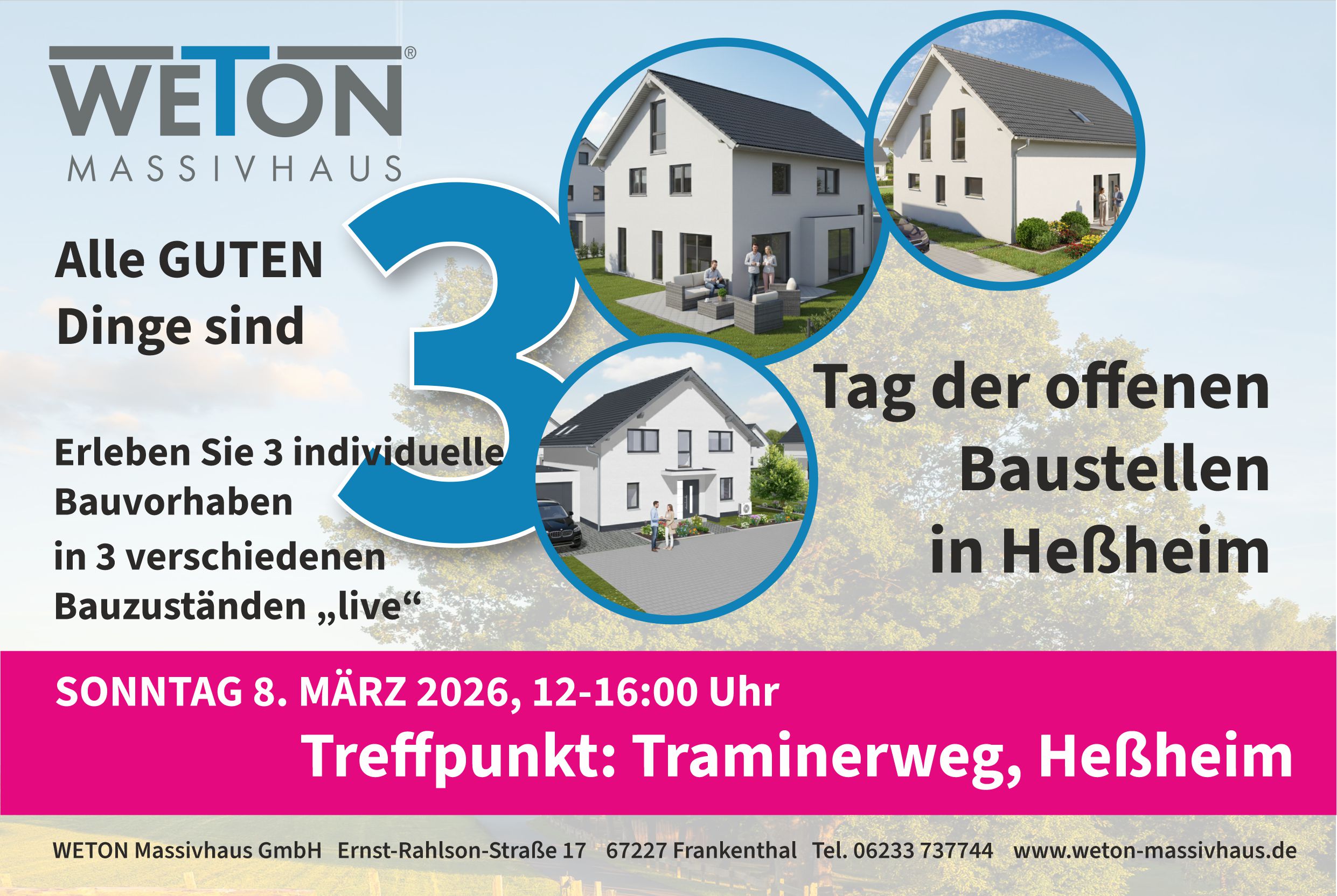 Das WETON Massivhaus Team freut sich darauf, Ihnen 3 unserer individuellen Baustellen vorzustellen. Erleben Sie WETON „live“ zu 3 unterschiedlichen Bauzuständen.